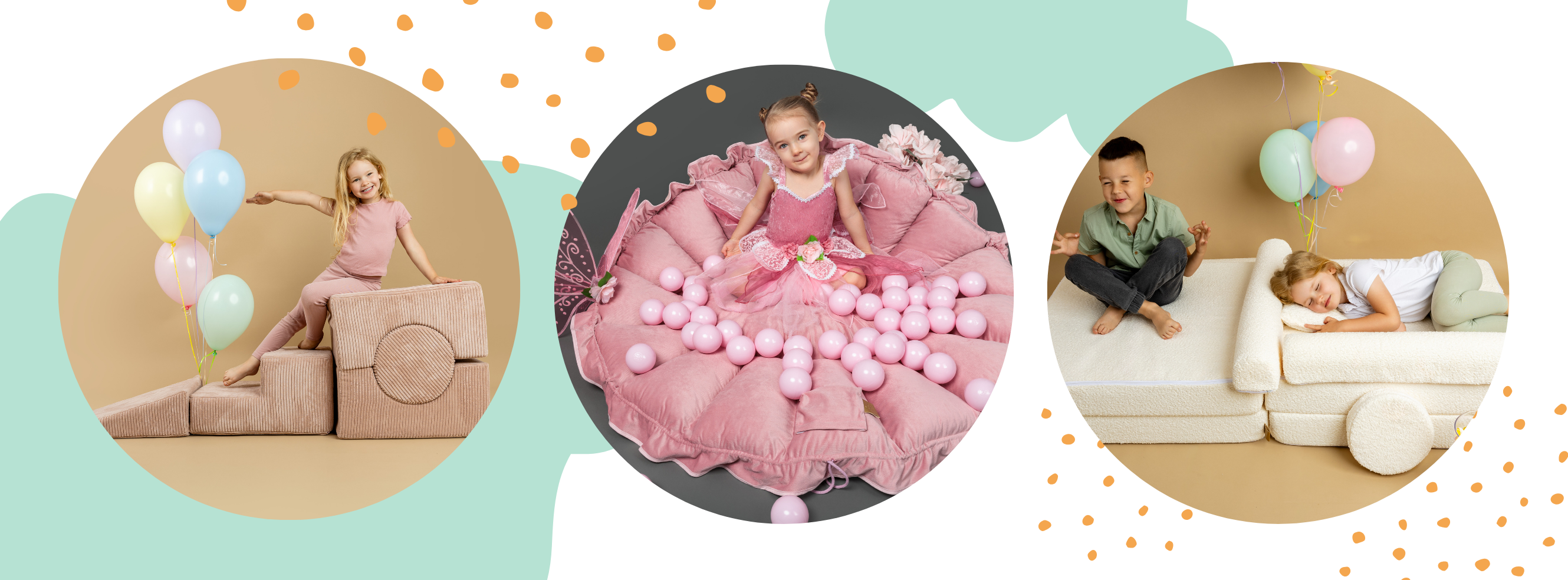 Round Ball Pit With 200 White/orange Balls, 90x30cm - Apricot Velvet